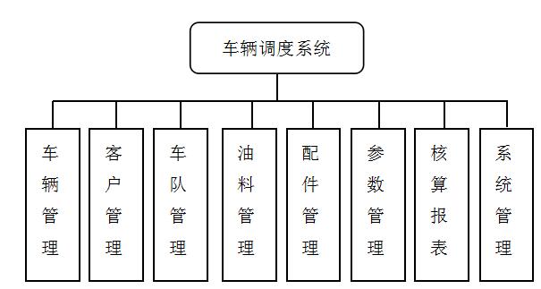 车辆调度管理系统包括车辆管理、客户管理、车队管理、加油管理、配件管理、参数管理、核算管理和系统管理,见图1-2。